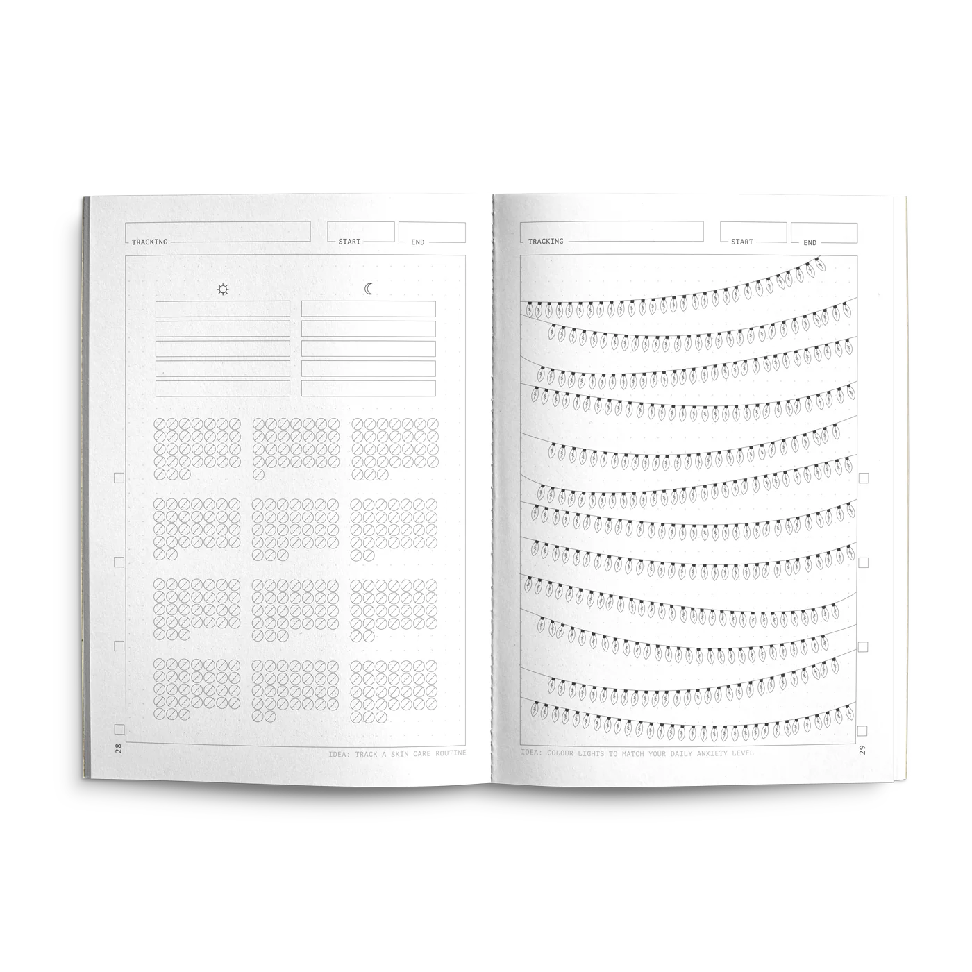 Dive into this notebook stacked with a world of different habit trackers, lunar cycles, calendars and mood logs. Find joy in building rituals around different parts of your day and establish healthy habits and mindsets along the way.